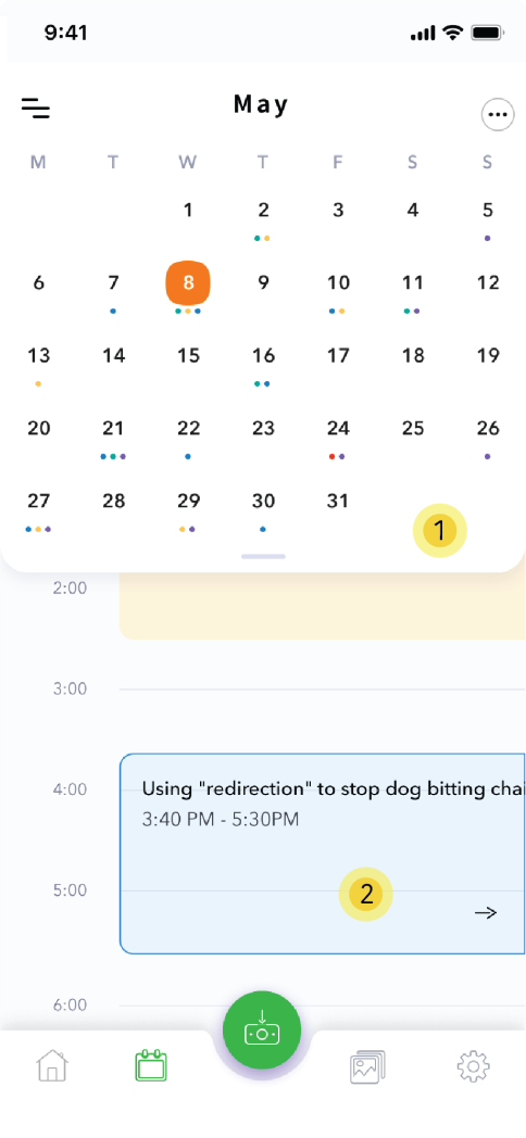 Calendar allows users to browse saved video clips more quickly. Use dots of different colors to remind users of the category of video clips.