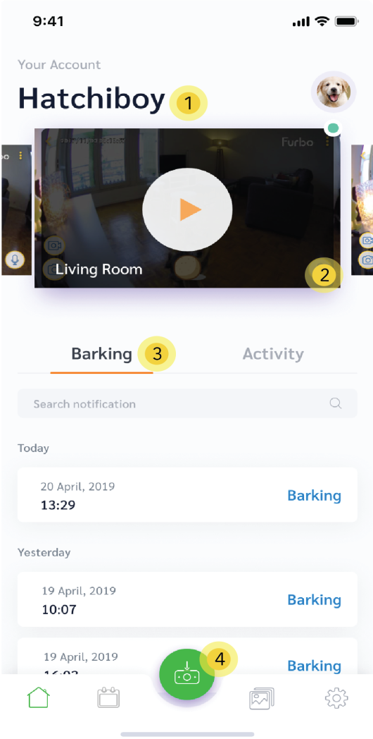 Furbo is an interactive smart dog camera that lets you see, talk, and toss treats to your dog from anywhere. The app including cloud recording, dog activity alert, dog selfie alert and person alert. My goal of redesign is to simplify the UI design and keep all the feature.