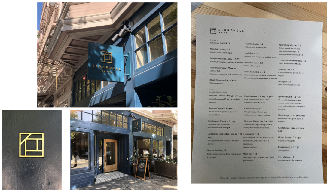 As an upscale cafe in San Francisco that specializes in hand- crafted matcha drink and pastries. The final design combined use of both unfinished stoneface and taw leaflet texture signifies the matrimony of the two at Stonemill Matcha. The Circular leaflet pattern also remind customers of the rotational milling of hand crafted matcha.